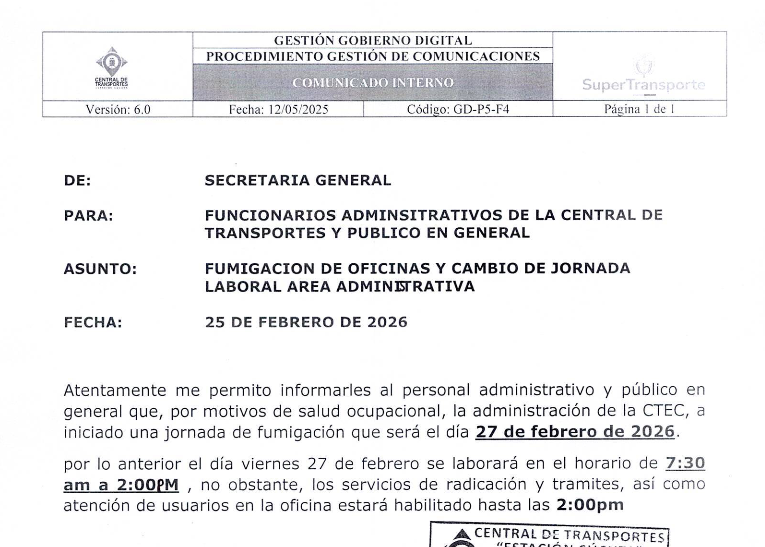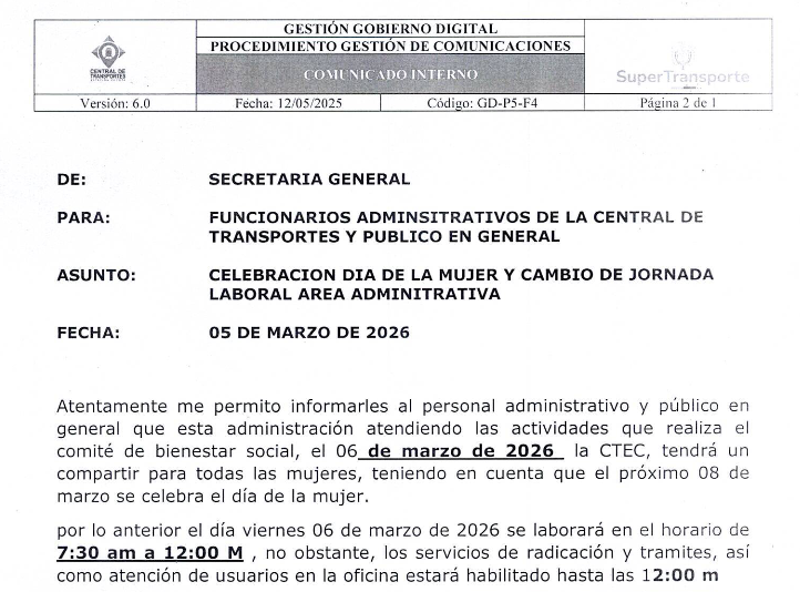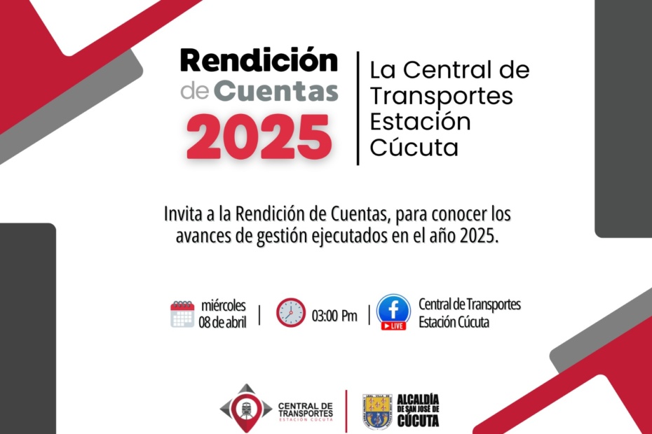 📢 Invitación Rendición de Cuentas 2025Invitamos a todos los contratistas y personal de la Central de Transportes a conectarse a la Rendición de Cuentas 2025, este miércoles 8 de abril a las 3:00 p.m.Su participación… INVITACION RENDICIÓN DE CUENTAS 2025