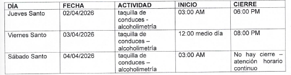 Para la Central de Transporte «Estación Cúcuta» es de suma importancia mantener informados a nuestras empresas aliadas, por esta razón queremos informarles que, con motivo de la semana santa la operatividad en los muelles, taquilla y alcoholimetría será la siguiente: